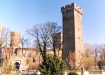 Wassergräben geschützt war. Nach ihrer Zerstörung wurde eine mächtige von